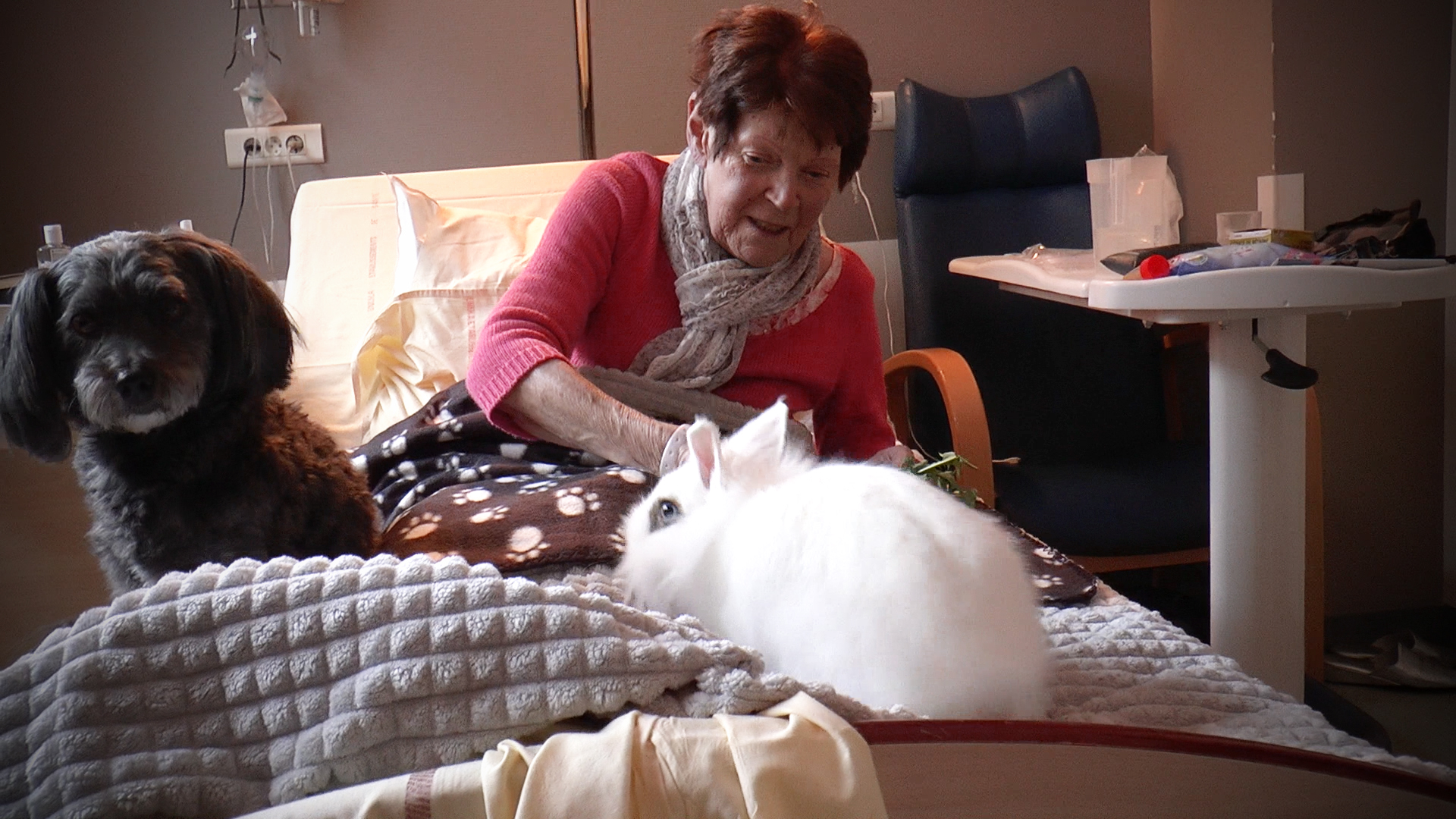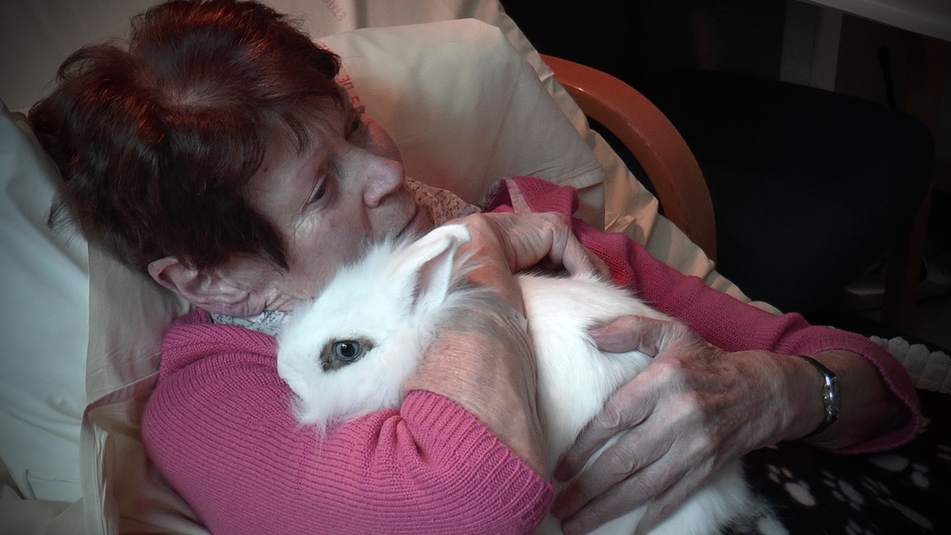 Les compliments s’enchaînent, les caresses, les anecdotes sur les animaux qui l’ont accompagné, son mari, son neveux… toute sa vie s’explique par la douceur de ses gestes, de ses paroles. Jusqu’à la réalité d’aujourd’hui qu’elle connaît, dont elle nous parle avec un très grand réalisme assumé.